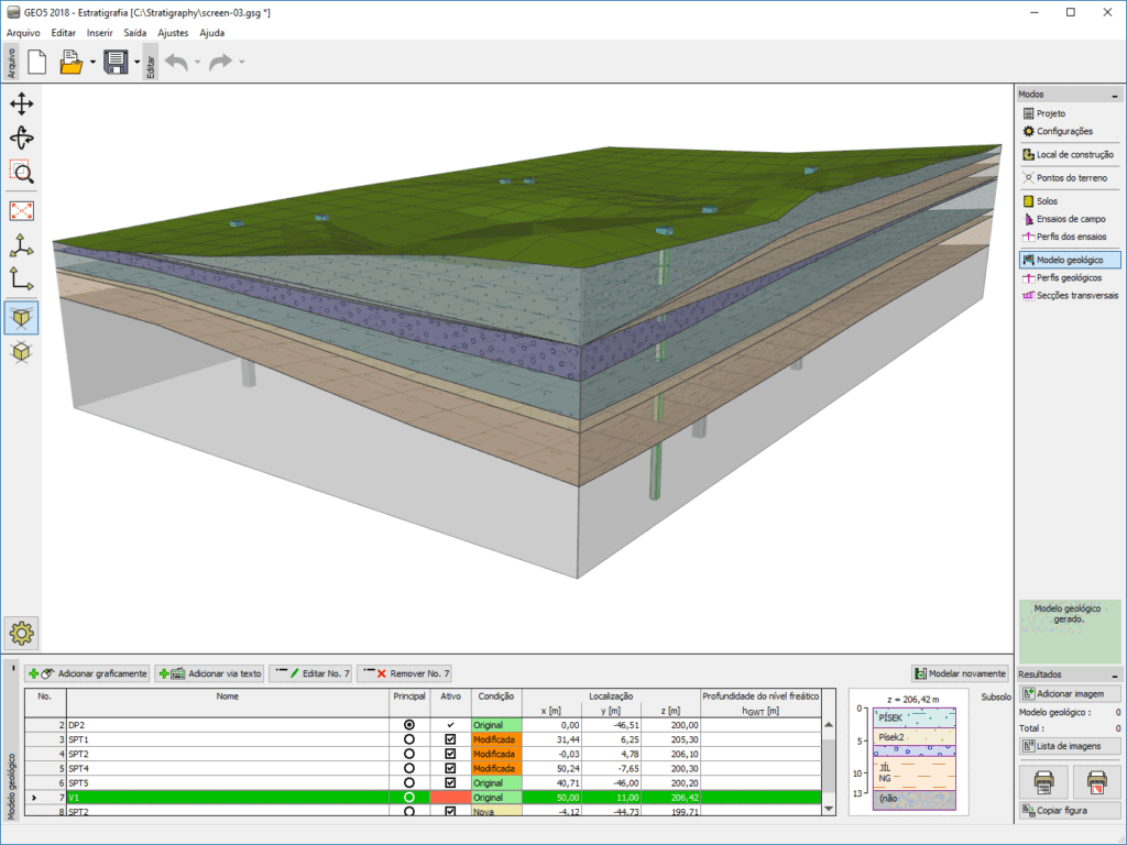 O programa GEO5 Estratigrafia foi concebido para avaliar resultados obtidos a partir de ensaios de campo (sondagens, CPTs, DPTs, SPTs, DMTs, etc.), para gerar modelos geológicos 2D e 3D e para exportar perfis geológicos para outros programas GEO5.